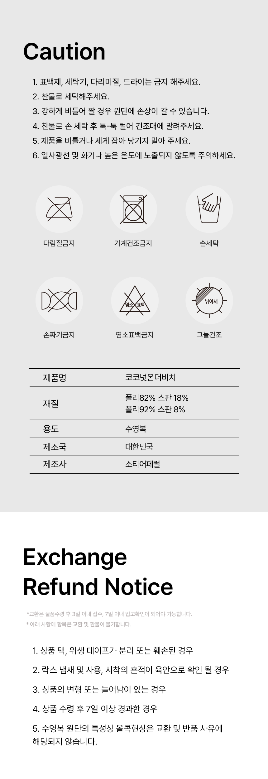 - 단순 변심의 경우 교환∙반품이 불가합니다. (교환/반품비 고객님 부담)