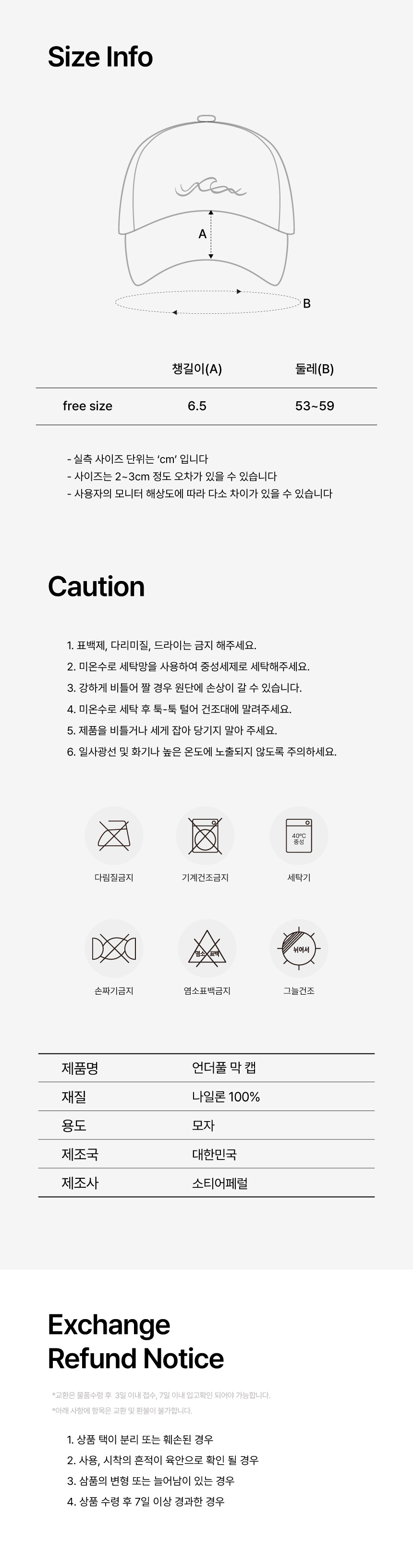- 단순 변심의 경우 교환∙반품이 불가합니다. (교환/반품비 고객님 부담)